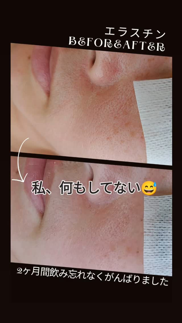 遠方から月に1回、ご来店されているお客様です😊 遠方から月に1回、ご来店されているお客様です😊2ヶ月前からエラスチンサプリを飲み始めました✨ご来店時にはBLTにも入られます😊赤みが出やすく、ところどころガサつきがある乾燥部分と皮脂が多く毛穴が目…